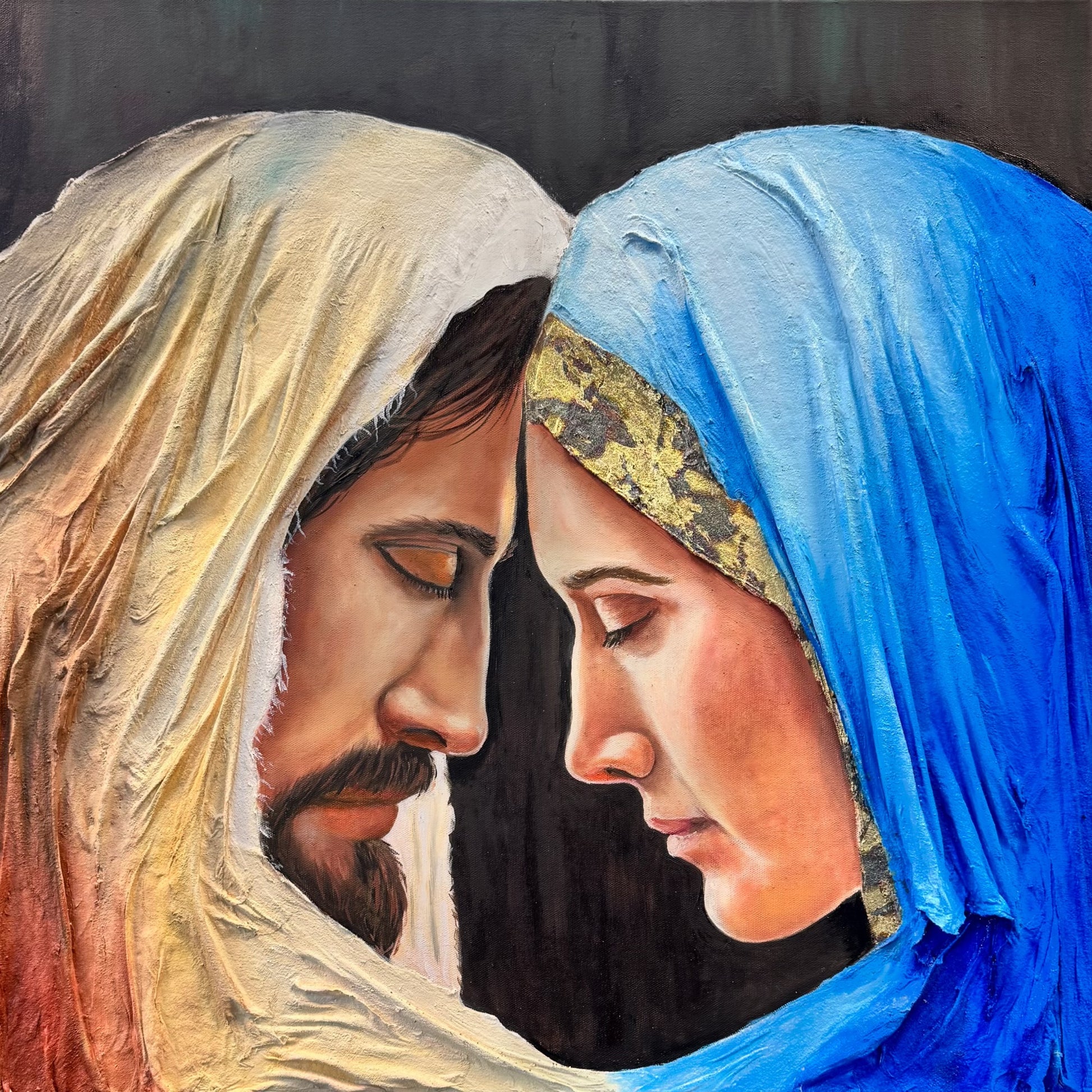 I’m honored to share my latest painting, "Serenity in a Sacred Gaze." This work captures a quiet, intimate moment between Jesus and his Mother Mary, where their foreheads meet in a gentle embrace of shared compassion and profound connection. The soft light caresses their faces, highlighting the textures of fabric and flesh, while the dark background draws us into the depth of their silent exchange. In this stillness, I wanted to evoke the tender strength that comes from unity and grace—a reminder that deep care often speaks without words. Through this painting, I invite you to pause and reflect on the sacred bond that holds us, even in the simplest gestures of love and presence